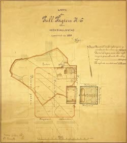 Kartan, som ritades år 1890 av A. Sigell, visar tomten Tull-Tägten n:o 6 i Hudiksvall inringat i ljust rött. Tomten ägdes av åkaren J. Hansson och köptes av Hudiksvalls lasarett för 17 000 kronor år 1899.