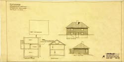 På denna ritning, gjord av arkitekt Sten Dalén år 1947, ser vi en hönshusbyggnad med utgrävd källare, som byggdes vid Gysinge vårdhem. Vårdhemmet startade som ett bygdesanatorium och epidemisjukhus, men övergick senare till att bli vårdhem för personer med psykisk sjukdom och var i drift fram till 1980-talet.