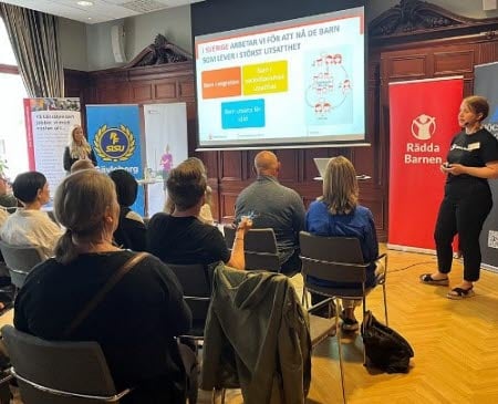 Malin Ahola och Johanna Ringström från Rädda barnen berättade om hur de arbetar för att skapa trygghet och delaktighet för barn.